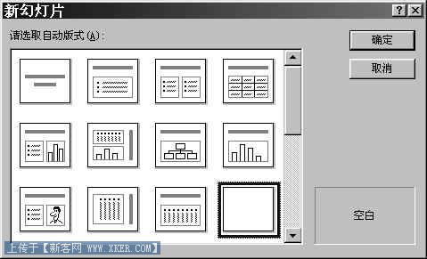 启动PowerPoint,在"新建演示文稿"对话框中选择"空演示文稿"。