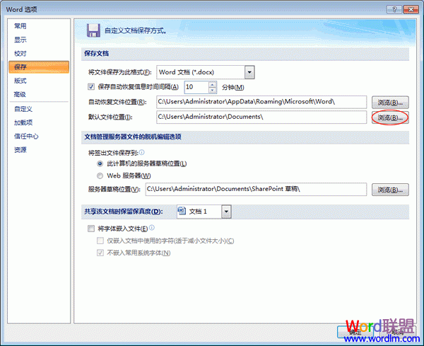 我们在使用Word2007打开文档时,默认文件位置是在 C:\Users\Administrator\Documents\ ,看见没,默认情况下是C盘,大家应该知道C盘是系统盘,不便存放文件,万一那天系统奔溃了,哭都没眼泪了。
