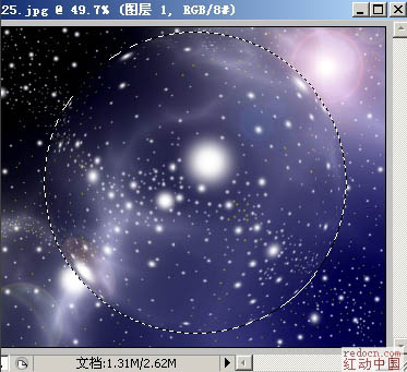 本教程介绍简单的立体球体的制作方法。大致过程:先选好背景图片,然后用椭圆选框工具拉出合适的正圆选区,用扭曲中的球面化及旋转扭曲滤镜做出球体的立体感。后期再调整一下光感和颜色即可。