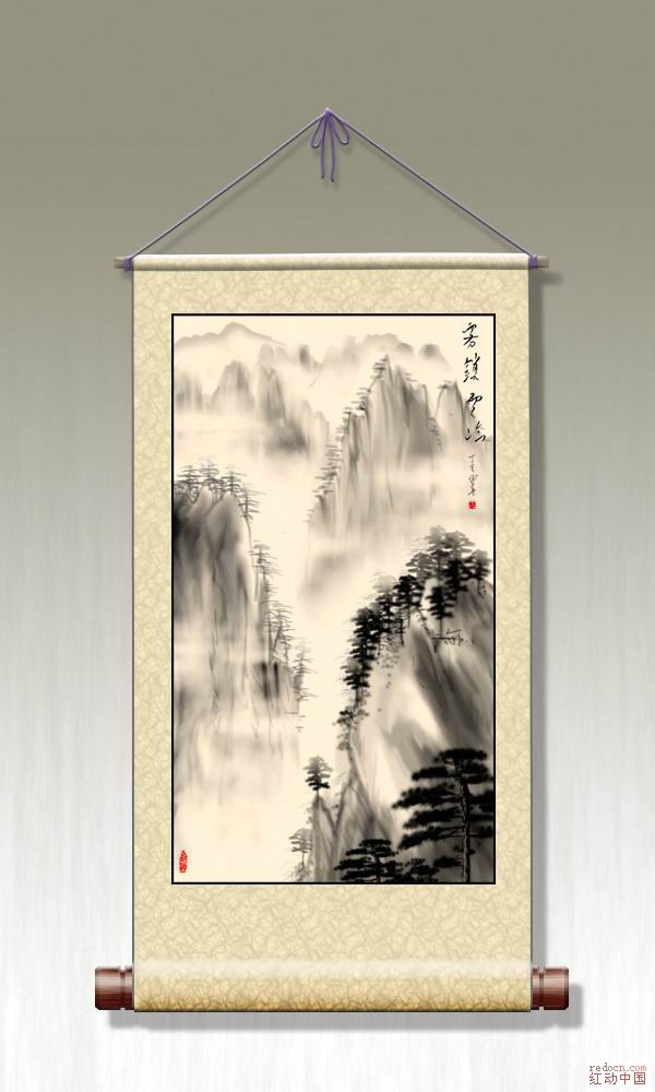 本教程的过程介绍有点简单,鼠绘的时候可能会复杂很多。山峰、树木、云雾等都需要先自己设置好笔刷后再慢慢绘制。