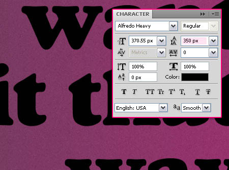 4、创建文本使用黑色。 使用的字体是阿尔弗雷,大小为370px。您可以改变调整行距。