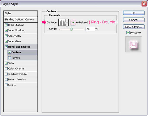 9、斜面和浮雕:更改深度到300 ,尺寸16 ,而软化1 。取消勾选使用全局光,更改角度对70和高度30 。更改 光泽等高线,选择缺口波浪 ,并检查消除锯齿方块。另外,更改高光模式为柔光 ,其颜色为#ffe8f6和影子模式颜色为#d495bb。