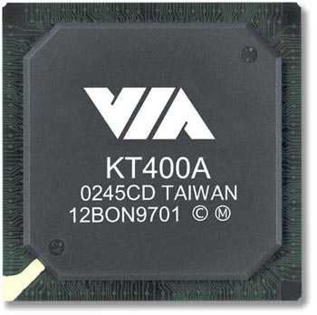 KT400芯片组则由KT400北桥芯片和VT8235等南桥芯片组成(也有单芯片的产品,如SIS630/730等),其中北桥芯片是主桥,其一般可以和不同的南桥芯片进行搭配使用以实现不同的功能与性能。