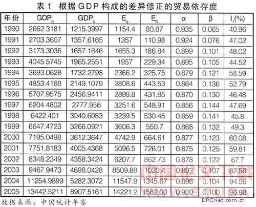 在公式(2)的基础上,考虑加工贸易,最后修正的外贸依存度计算公式为: