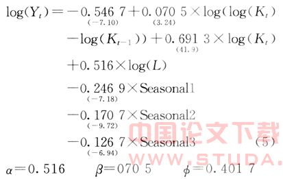 综合上面的两个假设,本文在索洛的新古典经济增长模型中加入了劳动力质量要素和资本质量要素,所构建的柯布-道格拉斯生产函数模型的表达式为: