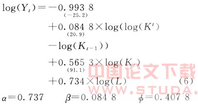 本文建立的内生经济增长模型参考了内尔森的建模思路,在模型中加入了资本质量要素。模型假设新投入的资本要比以前投入的资本有更高的质量,资本的质量与资本存量的平均使用时间成反比。根据推导可以证明(限于篇幅,推导过程略),资本存量的平均使用时间与资本存量的增长率成反比例关系。所以,在本文的模型中用资本存量的增长率(△K/K)来表示资本质量(Kq)。