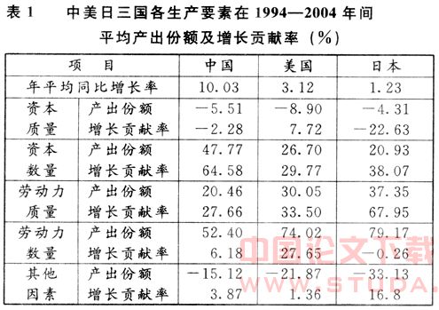 三、比较分析中美日三国生产要素对经济增长的贡献