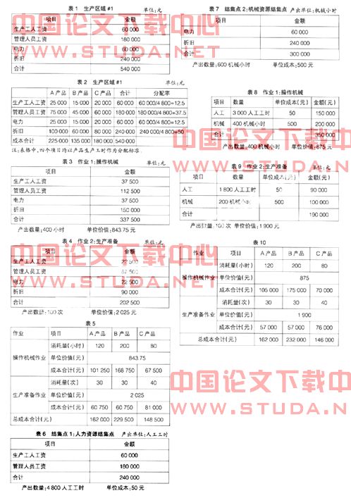 1.制造成本法应用。假设该生产区域生产A、B、C三种产品,本月生产工时数分别为2 000、1 200、1 600(单位:小时),计算如表2所示。