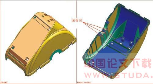 产品分析:此产品内部倒扣较大,且倒扣上有深骨位,顶出时会吃斜顶。采用二次顶出方式,能很好解决成品顶出不良、吃斜顶等问题。产品如图2所示: