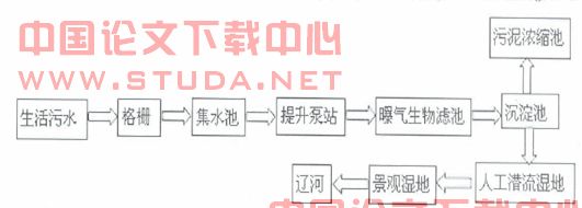 污水经过曝气生物滤池处理后进入沉淀池,沉淀池出来的污水进入潜流人工芦苇湿地处理系统。