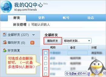您可以进入“我的QQ中心”进行批量删除与加入黑名单操作,点击这里进入网站,或通过客户端头像旁边的下拉菜单进入即可。